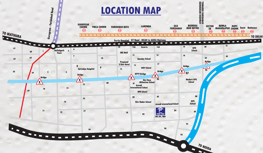 The world-class Amrita Hospital, major hospitals, and the Delhi-Mumbai Expressway are all within a short distance.