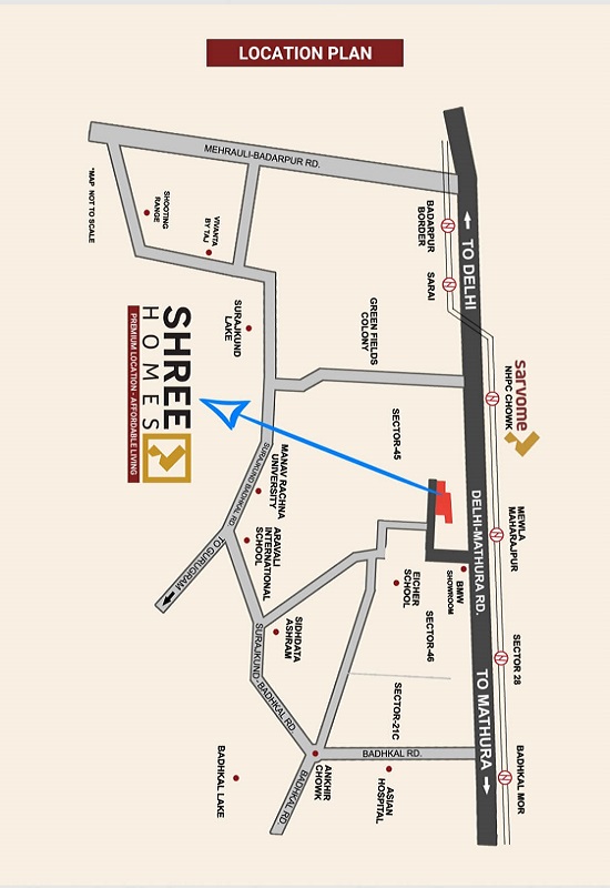 Just 5 minutes from South Delhi via Delhi-Mathura Road, our premium location offers convenient access to major educational institutions like Manav Rachna International University, Aravali International, and MVN School. Additionally, it is within walking distance from Delhi-Mathura Road and Mewla Maharajpur Metro Station.